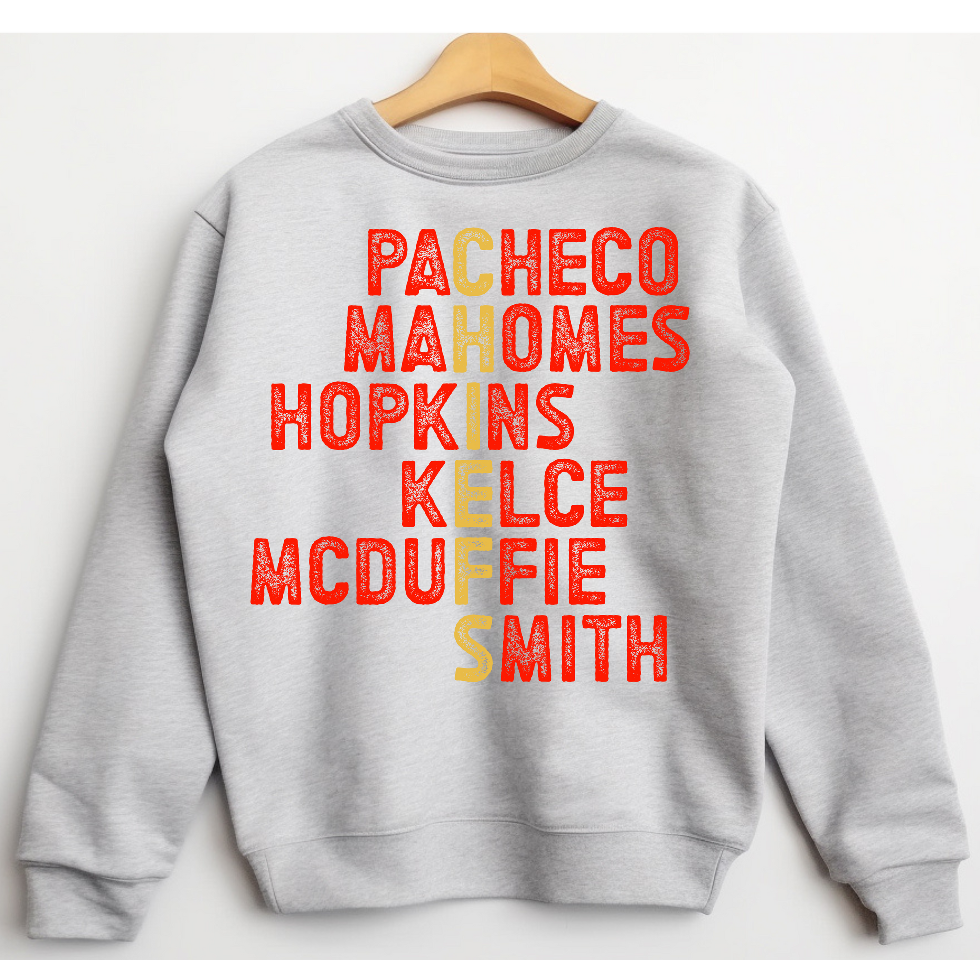 Calling all football fans! This fun, bold, and must-have sweatshirt spells out your favorite team's name using some of the best players in the game. Perfect for game day, tailgates, or just flexing on rival fans π.