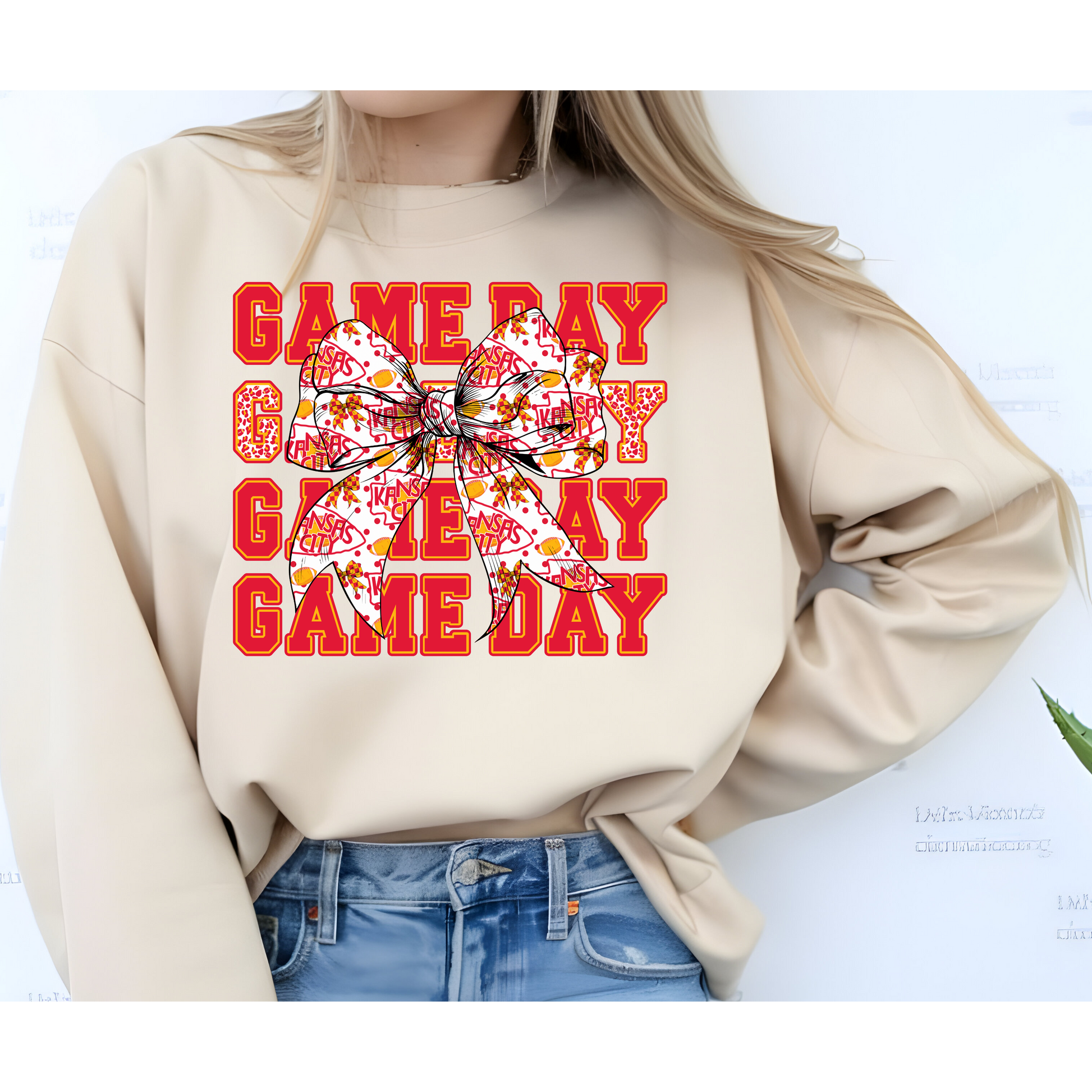 Bold & Eye-Catching β Vibrant "Game Day" text with a stylish bow design π
