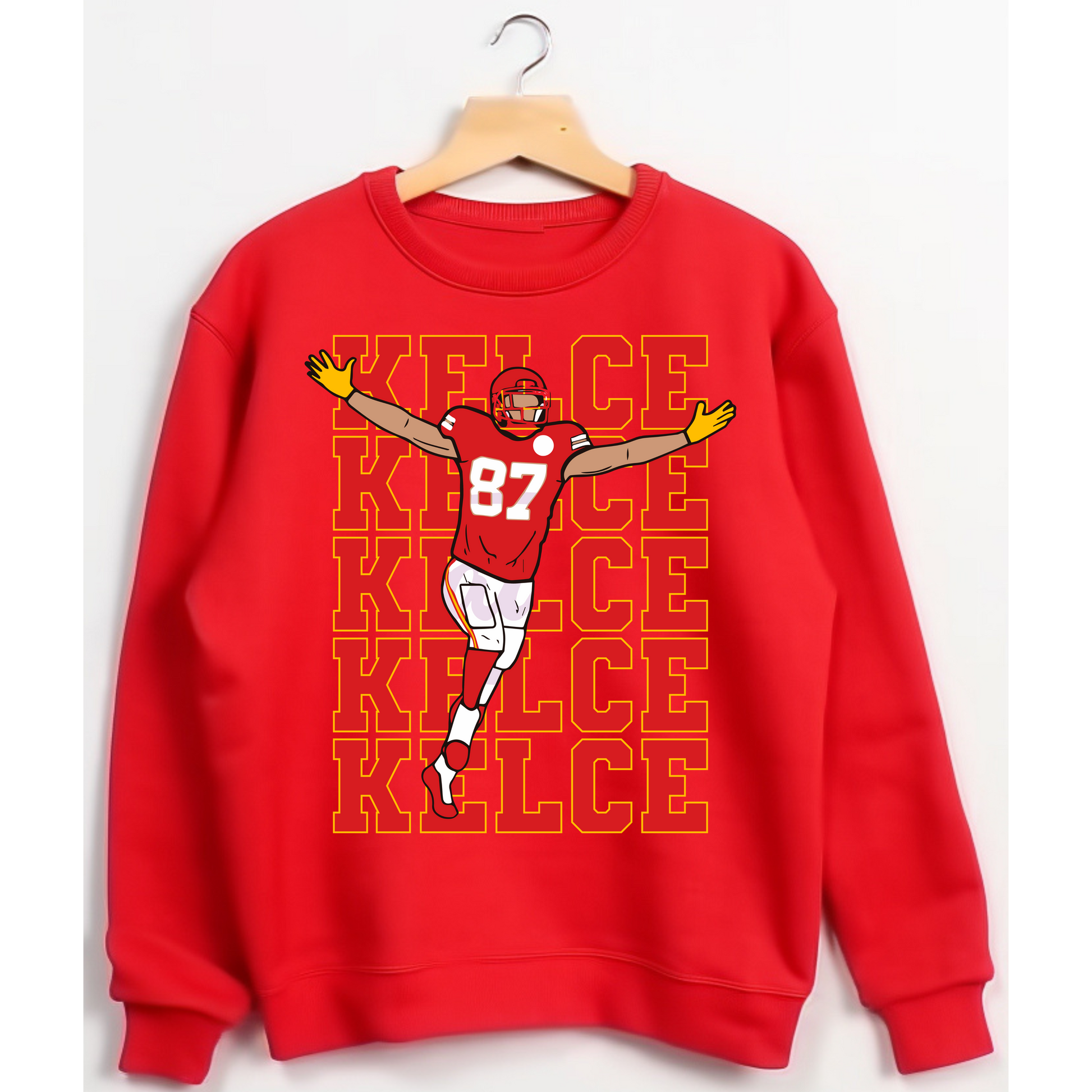 Turn heads and claim your spot in the Hall of Cozy Fame with this "Kelce Mode Activated" crewneck! Whether you're tailgating, couch cheering, or just flexing that MVP swagger at the grocery store, this sweatshirt is your ultimate gameday flex. Featuring bold "KELCE" graphics stacked like your favorite touchdown stats and #87 doing his iconic pose, itβs a touchdown for your wardrobe.